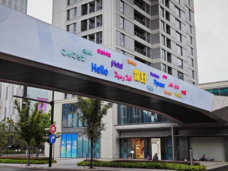 亞運(yùn)村內(nèi)不同語種的歡迎標(biāo)語