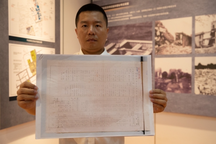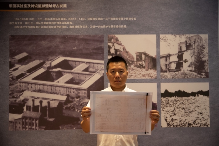 9月2日,在侵華日軍第七三一部隊罪證陳列館,哈爾濱市侵華日軍細菌與毒氣戰(zhàn)史研究會副秘書長金士成展示新一批731部隊軍醫(yī)協(xié)同犯罪檔案資料。新華社記者 張濤 攝