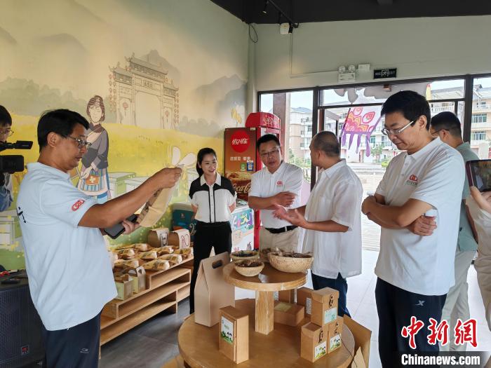 農(nóng)旅項(xiàng)目考察組第一站前往竹垟畬族鄉(xiāng)蓋竹村風(fēng)情廣場畬小妹農(nóng)文創(chuàng)產(chǎn)品展銷中心,重點(diǎn)了解當(dāng)?shù)氐漠屶l(xiāng)文創(chuàng)產(chǎn)品和土特產(chǎn)。隨后,設(shè)計(jì)師團(tuán)隊(duì)赴畬族文化館、畬小妹民宿等地,了解畬鄉(xiāng)的婚嫁習(xí)俗、歷史變遷。