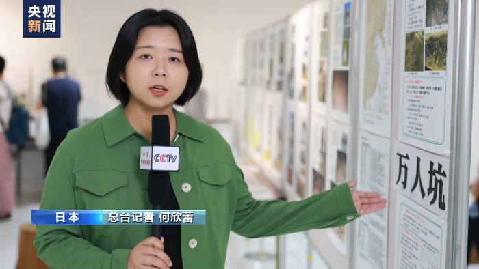 總臺記者 何欣蕾:到今年,這個展覽已經(jīng)是第八屆了,每年主辦方都會增加一些關(guān)于日本加害歷史的陳列,而今年增加的主要內(nèi)容是關(guān)于萬人坑,當(dāng)中揭開了日本在侵略歷史當(dāng)中極為不光彩的一頁。而這一墻的陳列也吸引了最多的參觀者駐足瀏覽,甚至拍照。