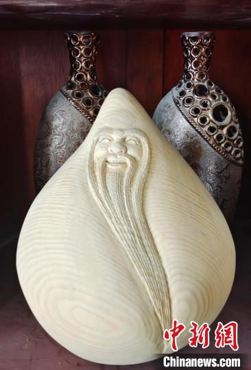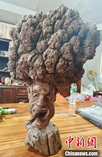 是什么讓這位從事園林工作的職工迷戀上根雕制作的呢?戴新告訴中新網(wǎng)記者,他是在看電影中得到啟蒙。