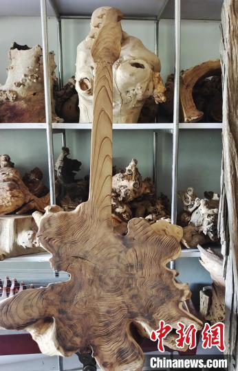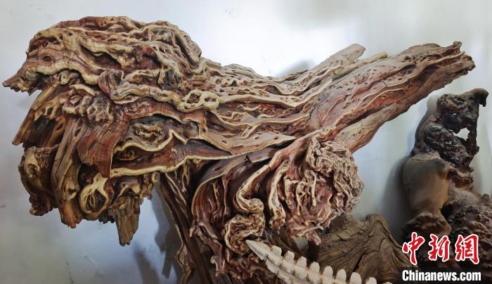 中新網(wǎng)新疆阿拉爾9月2日電(史玉江)一根腐朽的樹(shù)根,或許在別人眼里一文不值,可是在戴新看來(lái),朽木可雕琢,那些腐朽的樹(shù)根不僅能做成工藝品,還能增收致富?!霸诎⒗瓲栠@片土地上,各種樹(shù)根和朽木段,不管是沙漠中的,還是河道里的,只要我看上,都盡可能搬回來(lái)?!毙陆a(chǎn)建設(shè)兵團(tuán)第一師阿拉爾市“非遺”根雕傳承人戴新說(shuō),通過(guò)自己的雙手制作的根雕作品,讓他的生活樂(lè)趣無(wú)限。