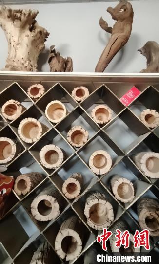 在位于新疆阿拉爾市的戴新根雕加工坊的大院內(nèi),擺放著一堆接一堆的各類(lèi)待加工“材料”,從長(zhǎng)二、三米的朽木、樹(shù)根,到僅有幾十厘米長(zhǎng)的各種樹(shù)枝,至少能裝滿幾輛貨車(chē)。中新網(wǎng)記者注意到,偌大的廠房式加工“車(chē)間”內(nèi),各類(lèi)正在加工的半成品約有幾十件。在左側(cè)相鄰的“車(chē)間”內(nèi),存放著20世紀(jì)70年代前后的字畫(huà)、木箱、電影放映機(jī)、音樂(lè)播放機(jī)……