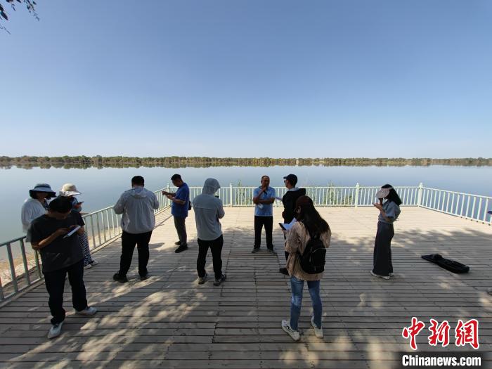 9月1日,“四季看新疆第二季”之“沿著河湖看新疆”主題采訪活動采訪團走進巴音郭楞蒙古自治州尉犁縣羅布淖爾國家濕地公園進行采訪。(中新網(wǎng)記者 王小軍 攝)