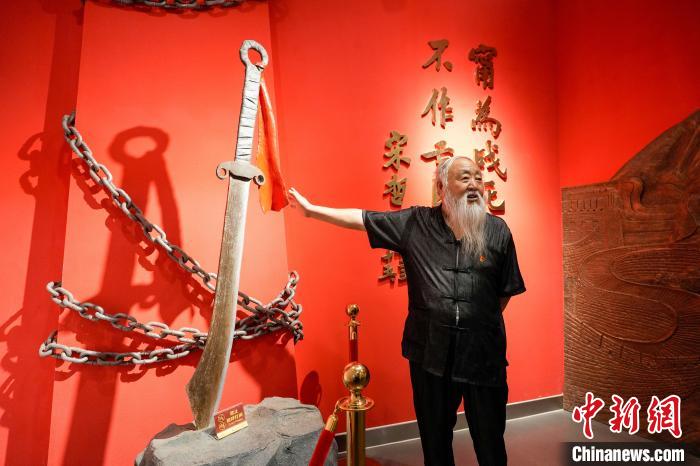 群山之中,一把巨型戰(zhàn)刀高高架起于蒼翠間。這把刀長29米、重19.33噸,造型厚重、雄渾,氣勢震懾人心。