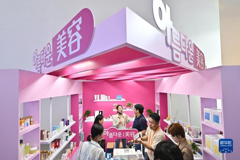 9月4日,參觀者在服貿(mào)會國家會議中心的韓國展臺了解美容產(chǎn)品。