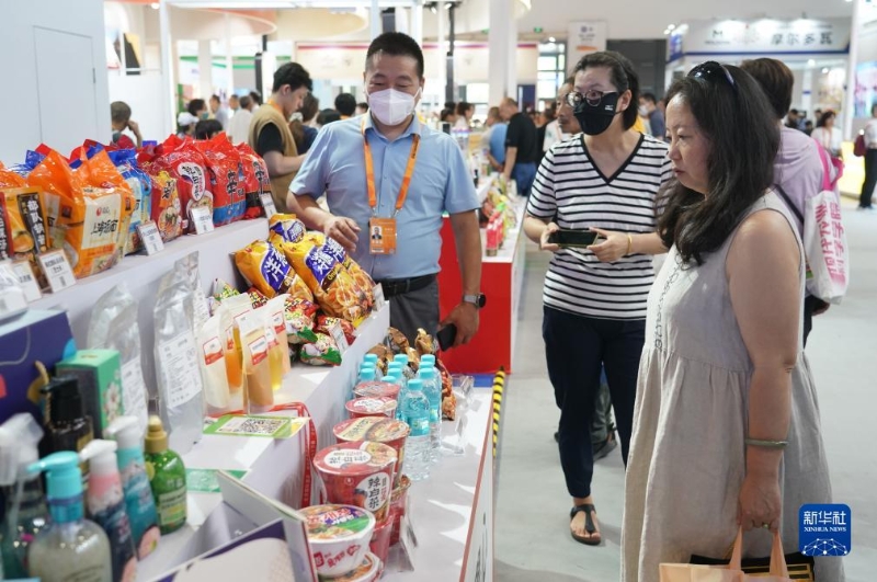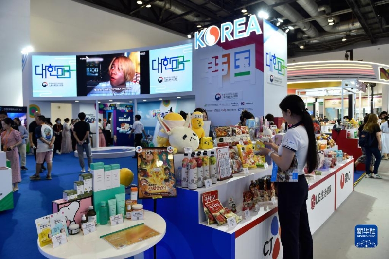 9月4日,在服貿(mào)會國家會議中心的韓國展臺,觀眾在挑選商品。