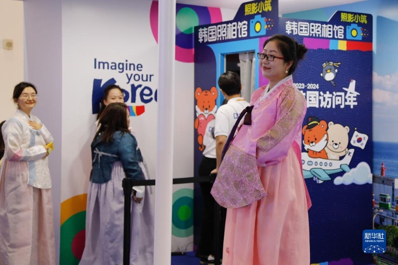 9月4日,在服貿(mào)會國家會議中心的韓國展臺,觀眾在拍照留念。