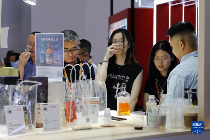 9月4日,在服貿(mào)會國家會議中心的日本展臺,觀眾在品嘗威士忌。