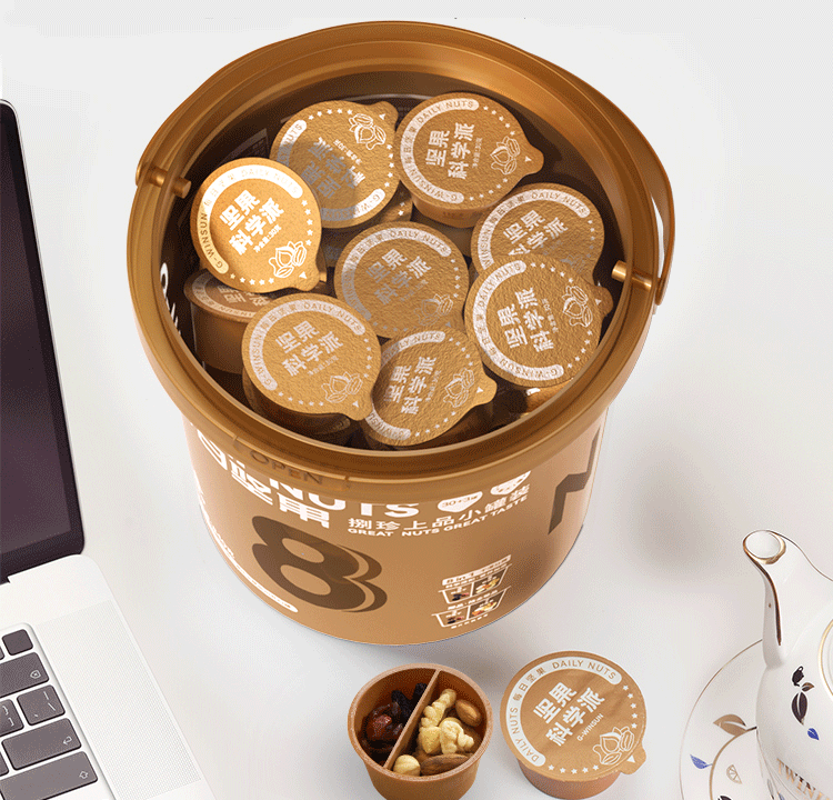 多年來,知味軒一直定位于“高端堅(jiān)果科學(xué)派”,不僅通過科學(xué)的檢驗(yàn)檢測(cè)篩選符合要求、品質(zhì)上乘的原料,運(yùn)用科學(xué)的工藝和智能生產(chǎn)設(shè)備對(duì)加工過程進(jìn)行精準(zhǔn)把控,還針對(duì)目標(biāo)消費(fèi)群體的營(yíng)養(yǎng)需求,對(duì)不同的堅(jiān)果與果干進(jìn)行科學(xué)的配比。在營(yíng)養(yǎng)和包裝上,知味軒同樣運(yùn)用創(chuàng)新的思維不斷研發(fā)產(chǎn)品,創(chuàng)造差異化,進(jìn)行微創(chuàng)新。比如針對(duì)職場(chǎng)白領(lǐng)人群研發(fā)的“捌珍上品”堅(jiān)果金桶,“5種果仁+3種果干”的科學(xué)配比提供每日一罐鮮活營(yíng)養(yǎng),采用新潮桶裝形式,不僅僅可以作為食品的包裝,還可以用來養(yǎng)花、收納等等。
