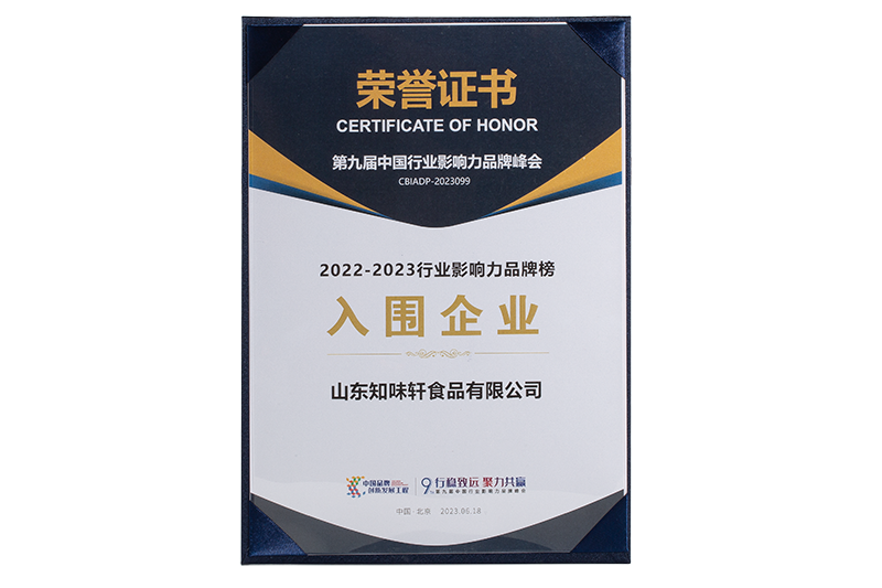 知味軒獲選“2022-2023行業(yè)影響力品牌榜入圍企業(yè)”