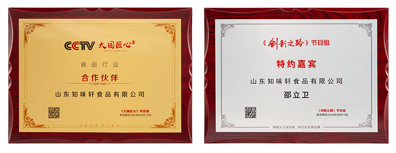 知味軒獲得CCTV《創(chuàng)新之路》節(jié)目組頒發(fā)的榮譽(yù)牌匾