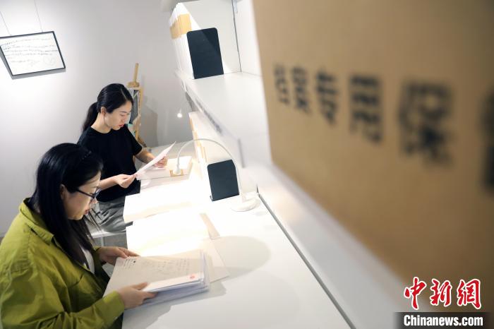 近日,在位于四川成都的童年秘密檔案館內(nèi),檔案館聯(lián)合發(fā)起人胡燕子(右)與輪值志愿館長武羊正在整理檔案。記者 王磊 攝