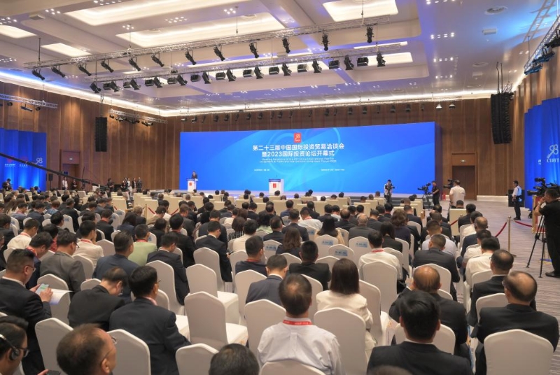 9月8日拍攝的第二十三屆中國(guó)國(guó)際投資貿(mào)易洽談會(huì)暨2023國(guó)際投資論壇開(kāi)幕式現(xiàn)場(chǎng)。新華社記者 林善傳 攝