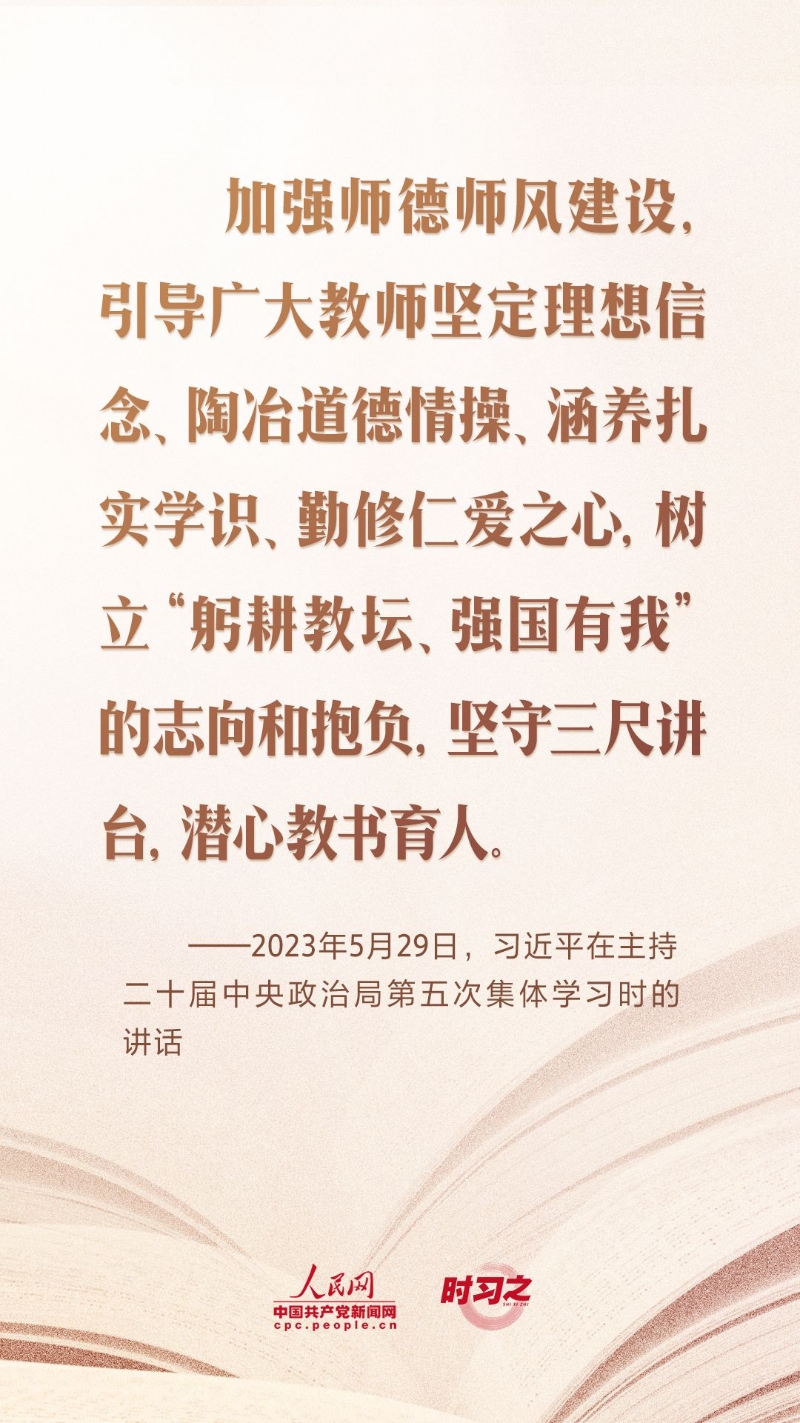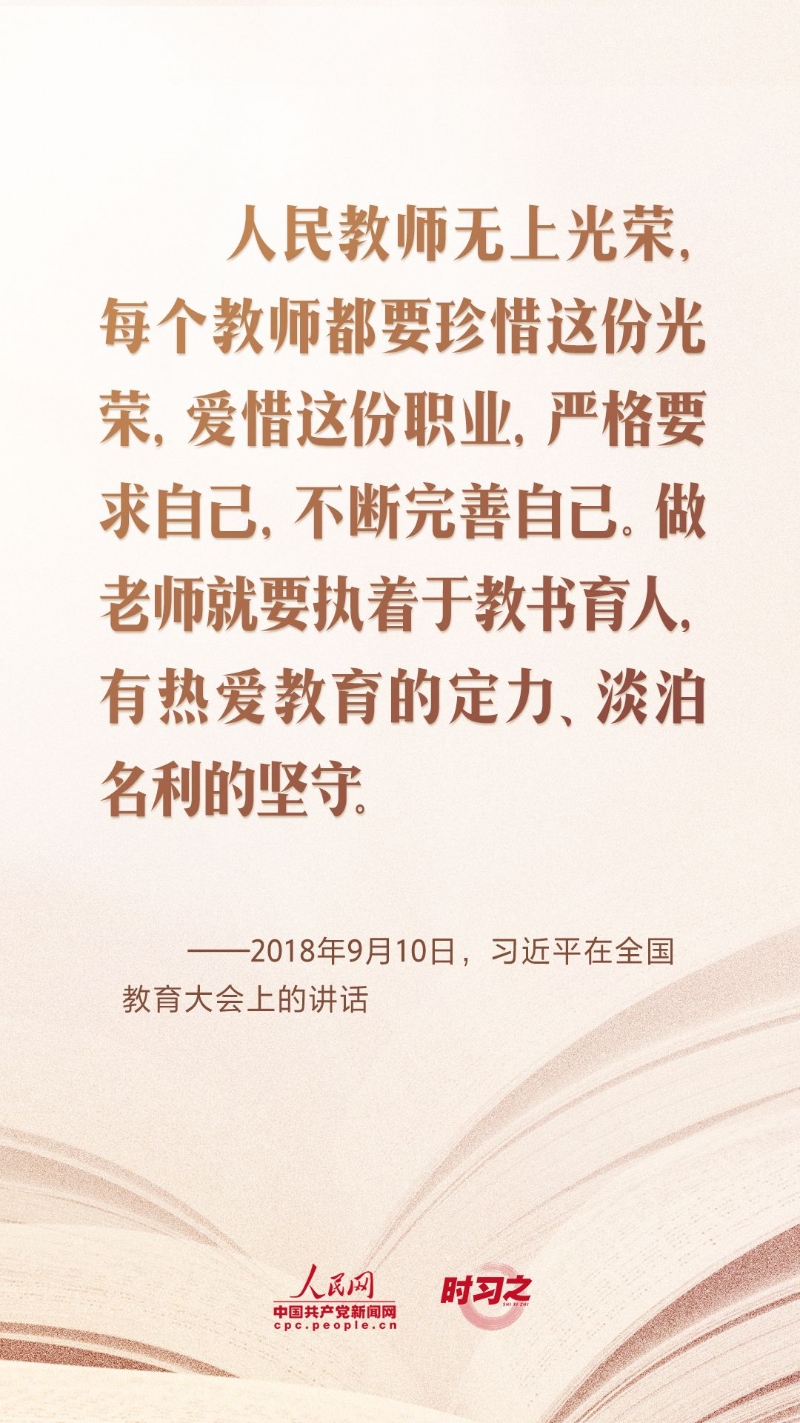 百年大計(jì),教育為本。教師是立教之本、興教之源,承擔(dān)著讓每個(gè)孩子健康成長(zhǎng)、辦好人民滿意教育的重任。一直以來(lái),習(xí)近平總書(shū)記高度重視教師隊(duì)伍建設(shè),多次在不同場(chǎng)合強(qiáng)調(diào)教師工作的意義,對(duì)廣大教師提出殷切期望。