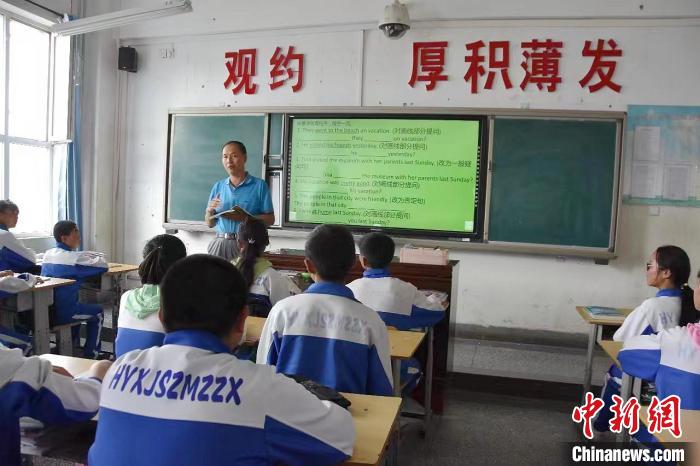 資料圖為吳永祥在上英語課。海晏縣教育局供圖