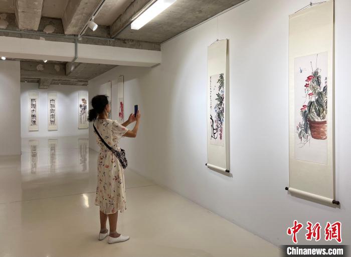 圖為觀眾在拍攝展覽畫作留念。中新網(wǎng)記者 馬秀秀 攝