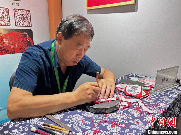 圖為非遺傳承人正在萬(wàn)壽宮歷史文化街區(qū)非遺匠心館內(nèi)展示非遺技藝。吳思瑜 攝