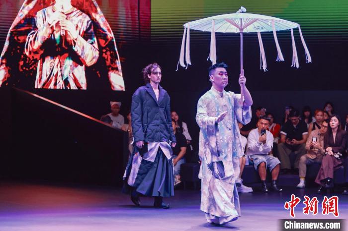 “FASHION FUSING 大灣區(qū)聯(lián)合時裝秀”現(xiàn)場。圖為北京師范大學珠海分校設計學院學生作品之一?!ashion Farm Foundation 供圖