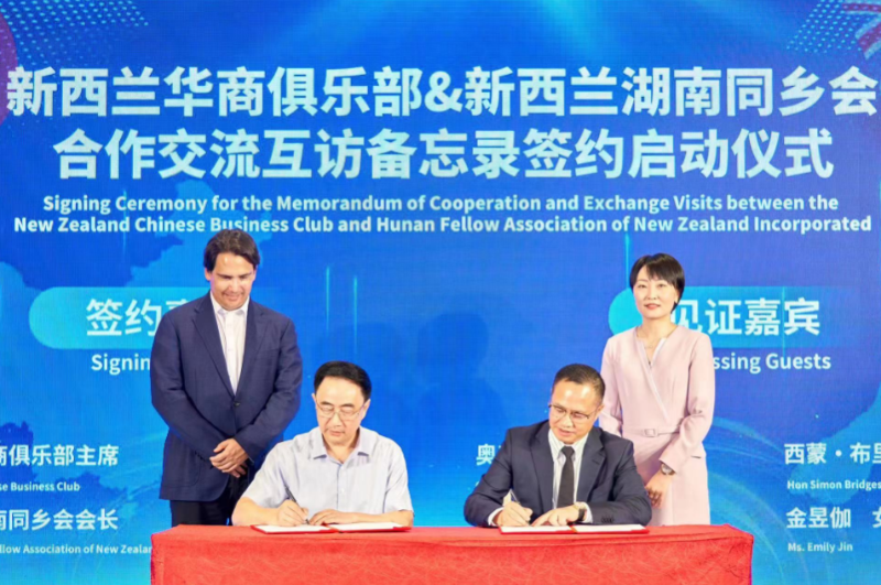 在此背景下,西蒙?布里吉斯的中國之行意義重大。在西蒙·布里吉斯和金昱伽見證下,新西蘭華商俱樂部、新西蘭湖南同鄉(xiāng)會共同簽署合作交流互訪備忘錄。中國和新西蘭兩國人民友誼的手握得更緊、共贏的步伐更堅定,互信互利的心貼得更近。