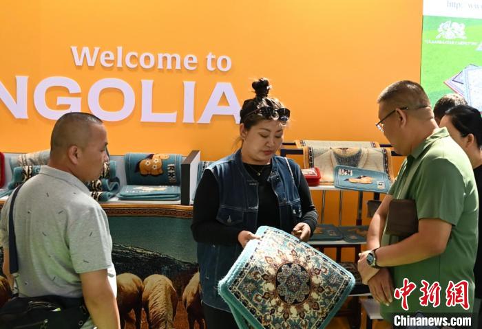圖為蒙古國(guó)商家的產(chǎn)品備受關(guān)注?!⑽娜A 攝