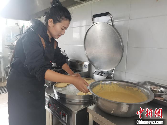 圖為莊麗媛在農(nóng)家院烙餅。畢樂陶 攝