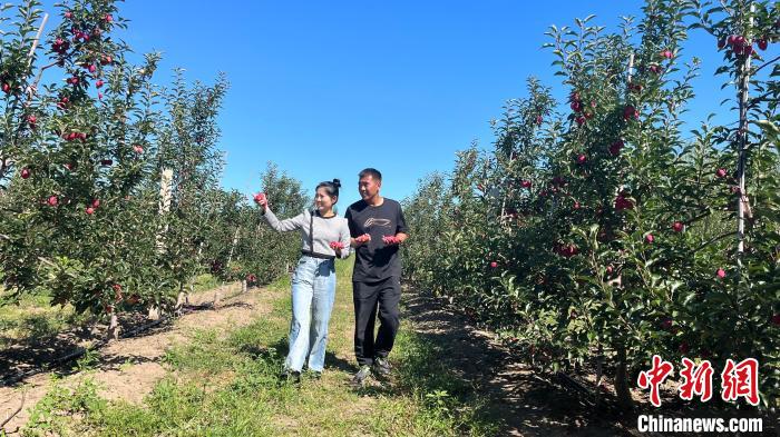 圖為莊麗媛夫妻走在豐收的果園里。呂志敏 攝