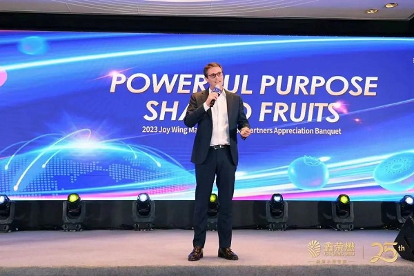 全球戰(zhàn)略合作伙伴代表上臺致辭,佳沛首席執(zhí)行官Dan Mathieson充分肯定了佳沛與鑫榮懋集團(tuán)近二十年的合作,見證了集團(tuán)25年的發(fā)展,并為集團(tuán)未來25年的發(fā)展寄予了美好的祝福!
