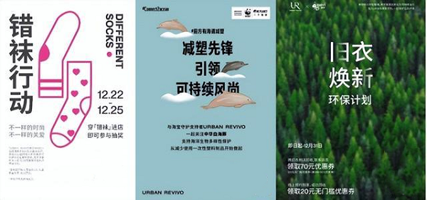 2019到2021年連續(xù)三年,UR持續(xù)推出了環(huán)保膠囊系列,這一產品系列所采用的面料,由回收的塑料瓶經過再加工后所制成的環(huán)保紗線構成,從而顯著降低了在服裝制造過程中對水資源造成的污染。在2022年12月,UR與WABC藝途公益基金會共同發(fā)起了名為“錯襪行動”的公益活動,這一活動鼓勵每個人通過“穿兩只不一樣的襪子”的方式來表達自己獨特的觀點以及對心智障礙群體及其家庭的包容與接納。