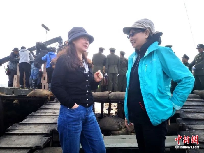 何冀平(右)在電影拍攝現(xiàn)場。受訪者供圖