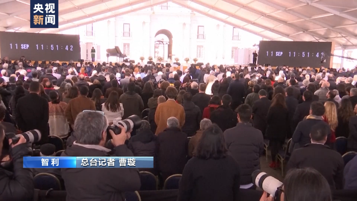 總臺(tái)記者 曹璇:現(xiàn)在是當(dāng)?shù)貢r(shí)間9月11日上午,在智利總統(tǒng)府莫內(nèi)達(dá)宮內(nèi)正在舉行大規(guī)模紀(jì)念活動(dòng),緬懷50年前在軍事政變中遇難的前總統(tǒng)阿連德及眾多民眾。多位拉美國(guó)家的元首以及各國(guó)代表也來到了今天的紀(jì)念活動(dòng)現(xiàn)場(chǎng)。