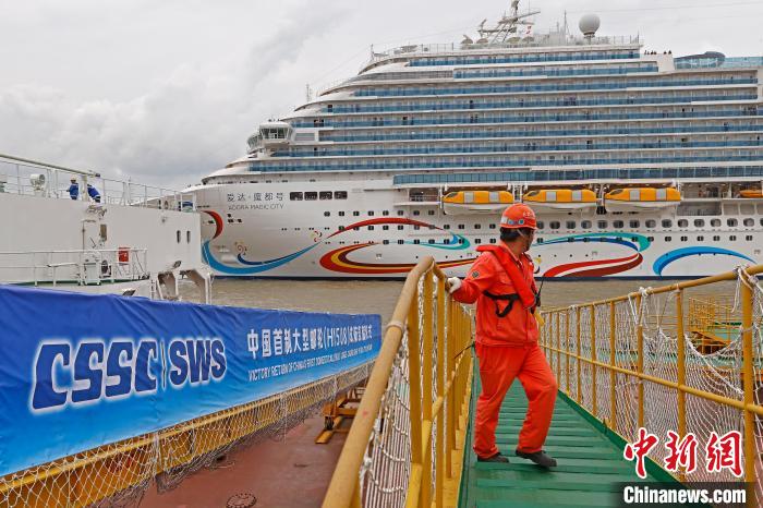 中國(guó)首制大型郵輪完成試航的所有驗(yàn)證項(xiàng)目返回上海。中新網(wǎng)記者 殷立勤 攝