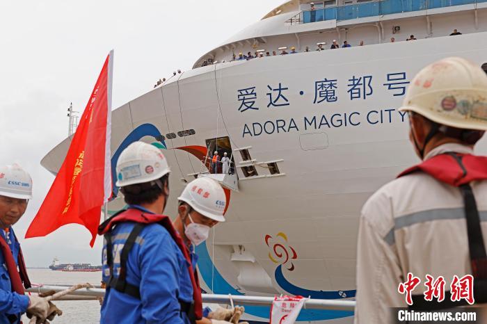 中新網(wǎng)上海9月12日電 (記者 殷立勤) 9月12日,備受世人矚目的“愛(ài)達(dá)·魔都號(hào)”在多艘拖輪的牽引下,穩(wěn)穩(wěn)地靠泊于中國(guó)船舶集團(tuán)有限公司旗下上海外高橋造船有限公司4號(hào)碼頭。中國(guó)船舶集團(tuán)鄭重宣告,經(jīng)過(guò)六天五夜1630海里的海上航行,中國(guó)首制大型郵輪完工試航的所有驗(yàn)證項(xiàng)目全部達(dá)標(biāo),勝利歸來(lái)。