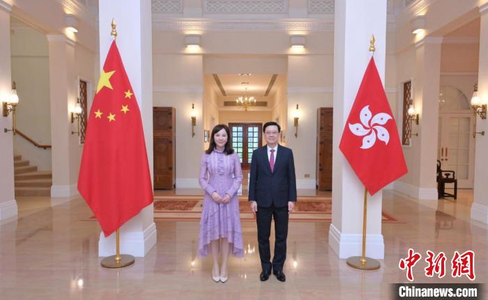 香港特別行政區(qū)行政長官李家超(右)與廣東高等國際金融與法律研究院院長葉紫瑩(左)會面。受訪者供圖