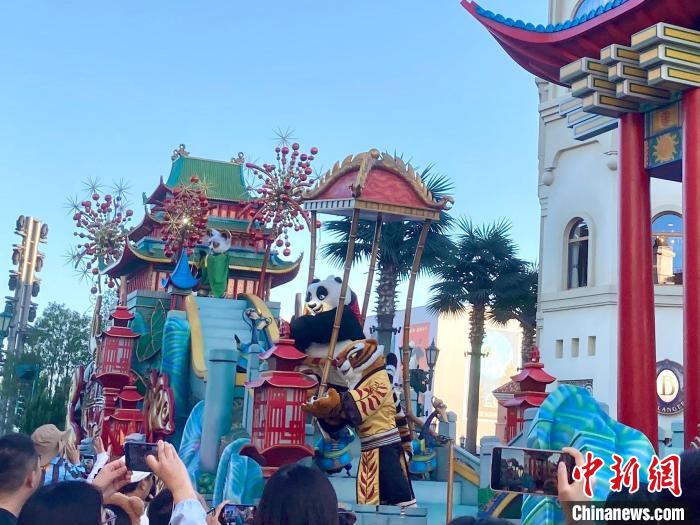 9月12日,游客在北京環(huán)球影城觀看環(huán)球大巡游。徐婧 攝