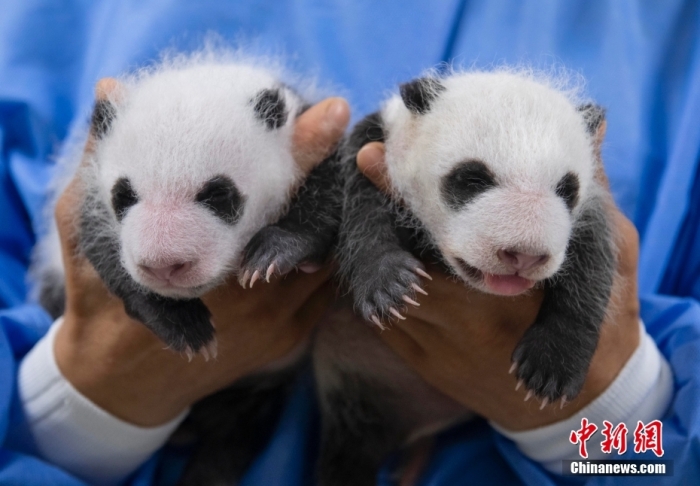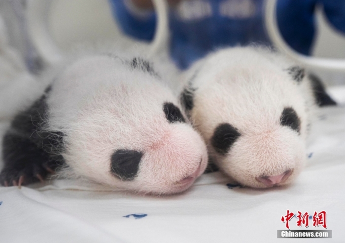 當(dāng)?shù)貢r(shí)間8月7日,韓國(guó)三星愛寶樂園公布雌性雙胞胎大熊貓幼崽(左為姐姐,右為妹妹)于6日拍攝的滿月照。愛寶樂園 供圖