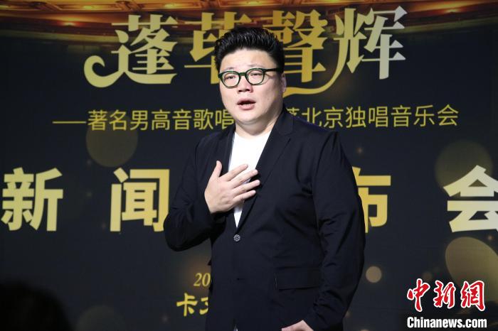 男高音歌唱家韓蓬日前在北京獨(dú)唱音樂(lè)會(huì)的新聞發(fā)布會(huì)上。張學(xué)軍 攝
