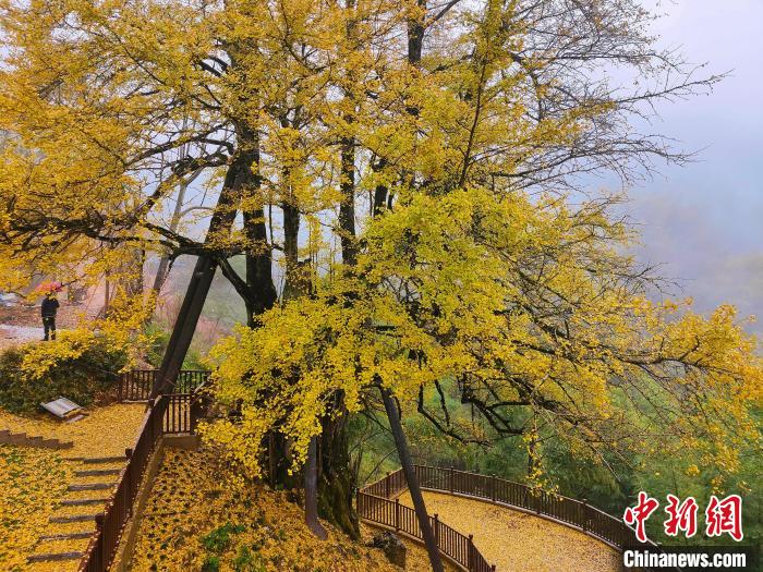 每到秋季,這棵古銀杏格外迷人。微風(fēng)徐來(lái),樹(shù)下遍地金黃,吸引各地游客和攝影愛(ài)好者紛至沓來(lái)。