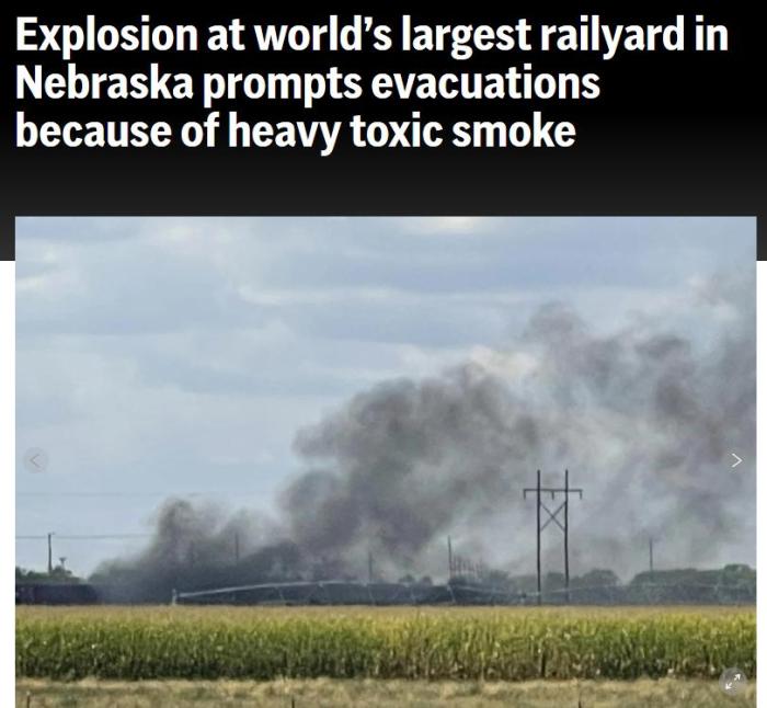 北普拉特消防局在社交媒體上發(fā)文說,由于火災(zāi)涉及“大量有毒煙霧”,所以進(jìn)行了疏散。泰斯弗還透露,其中一節(jié)車廂裝有高氯酸,這種物質(zhì)往往被用于制造炸藥等。