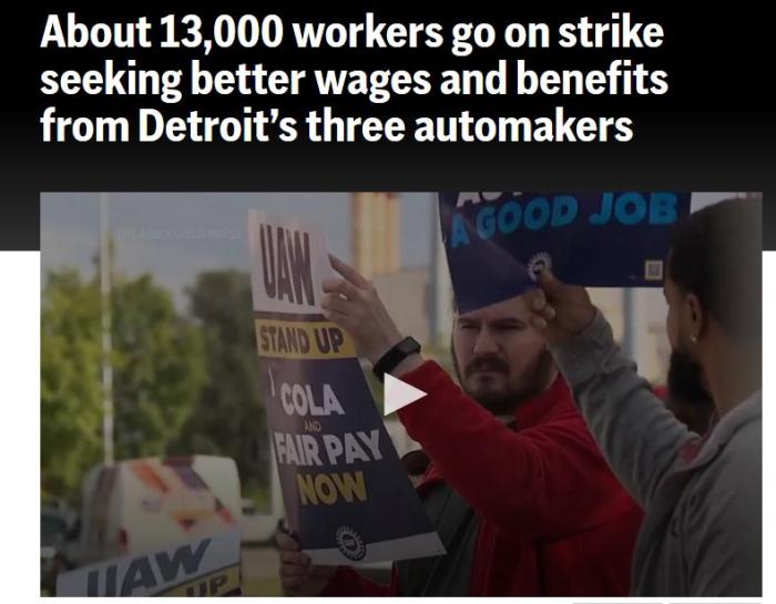 據(jù)報道,美國汽車工人聯(lián)合會主席費恩(Shawn Fain)表示:“這是我們歷史上首次同時針對(汽車)三巨頭展開罷工。”費恩還稱,工會目前將暫時推遲其它代價更高的罷工形式,但如果不能就新合同達成一致,“所有選擇都是開放的”。