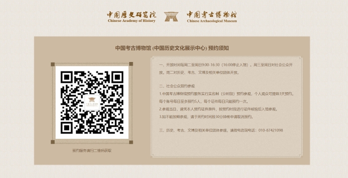 中國(guó)考古博物館開(kāi)放時(shí)間為每周二至周日9:00-16:30(16:00停止入館)。掃碼預(yù)約↓