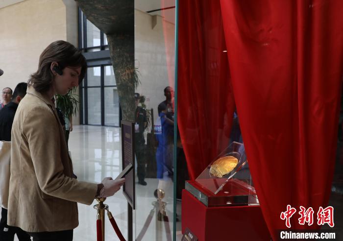 圖為觀眾在鄭州商都遺址博物院參觀商代“金覆面”。李新華 攝