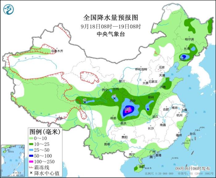9月18日08時(shí)至19日08時(shí),東北地區(qū)東部、西北地區(qū)中東部、黃淮西部和北部、江漢、西南地區(qū)東北部等地部分地區(qū)有中到大雨,其中,陜西南部、四川盆地東北部、重慶東北部等地部分地區(qū)有暴雨或大暴雨(100~180毫米)。內(nèi)蒙古中東部等地有4~5級(jí)風(fēng)。