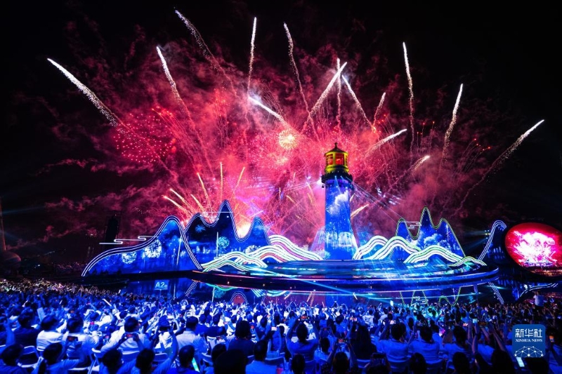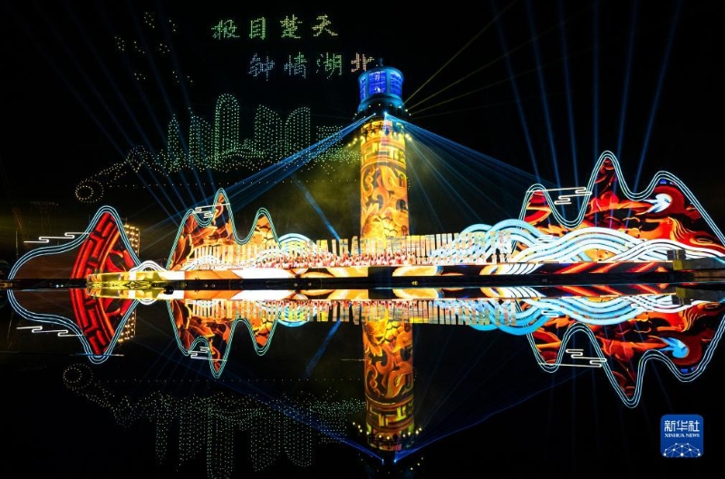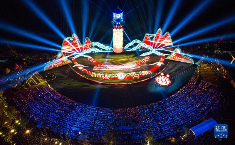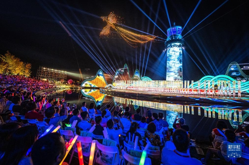 9月16日,觀眾欣賞第十四屆中國長江三峽國際旅游節(jié)開幕式表演(無人機照片)。