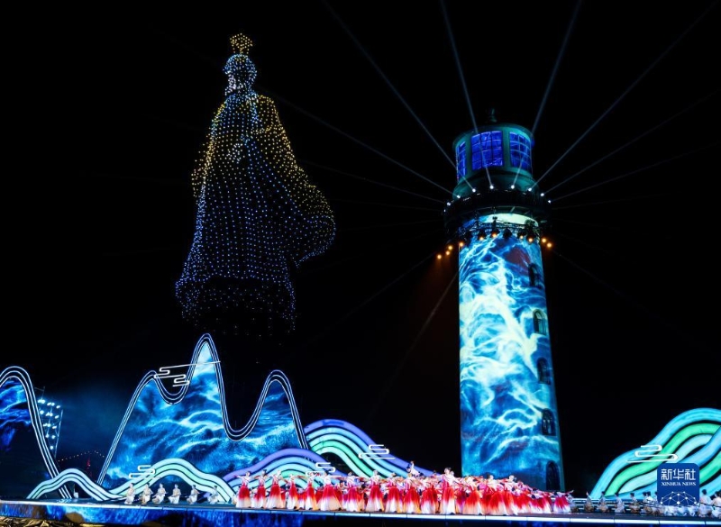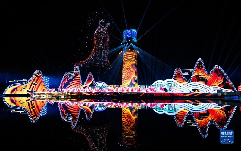 9月16日拍攝的第十四屆中國長江三峽國際旅游節(jié)開幕式無人機表演。