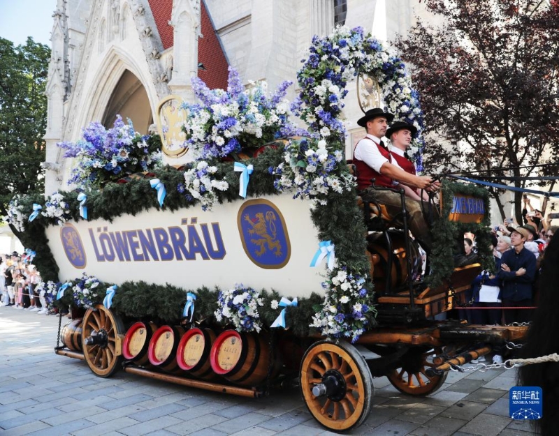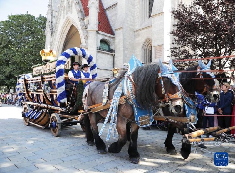 9月16日,人們駕駛本地著名啤酒品牌的馬車參加德國慕尼黑啤酒節(jié)開幕大游行。