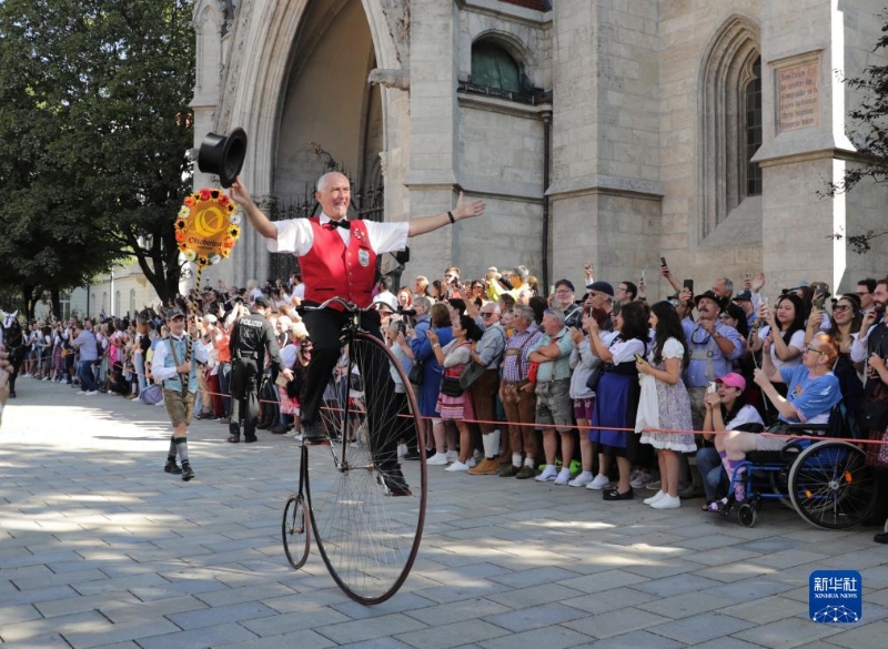 9月16日,演員參加德國慕尼黑啤酒節(jié)開幕大游行。