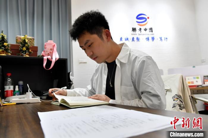 圖為簡(jiǎn)佑霖在備課。 中新網(wǎng)記者 呂明 攝