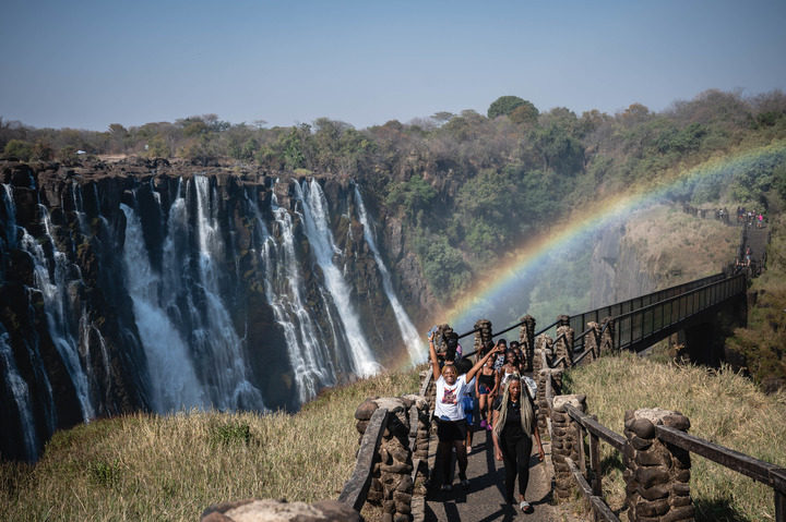 8月21日,游客在贊比亞觀賞維多利亞瀑布景色。