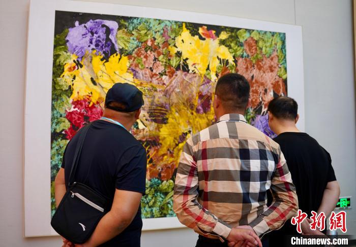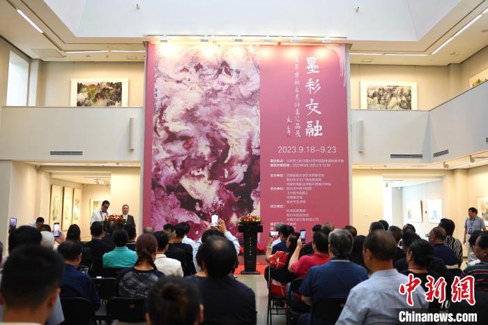 9月18日,“墨彩交融·喬翠蓮新意象繪畫作品展”在京開(kāi)幕。圖為觀展觀眾。陳欣怡 攝